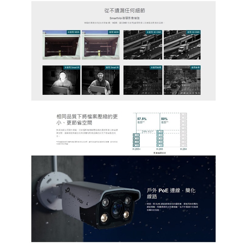 ‧智慧影像加強: VIGI 的專業技術處理影像(包含智慧IR、WDR、3D DNR 和夜視),大幅改善監控品質