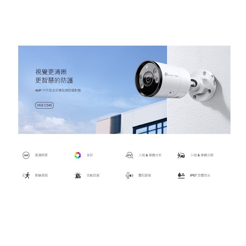 TP-LINK VIGI C345 金屬殼 4MP戶外型全彩槍型監視器 6mm鏡頭/4mm鏡頭/2.8mm鏡頭